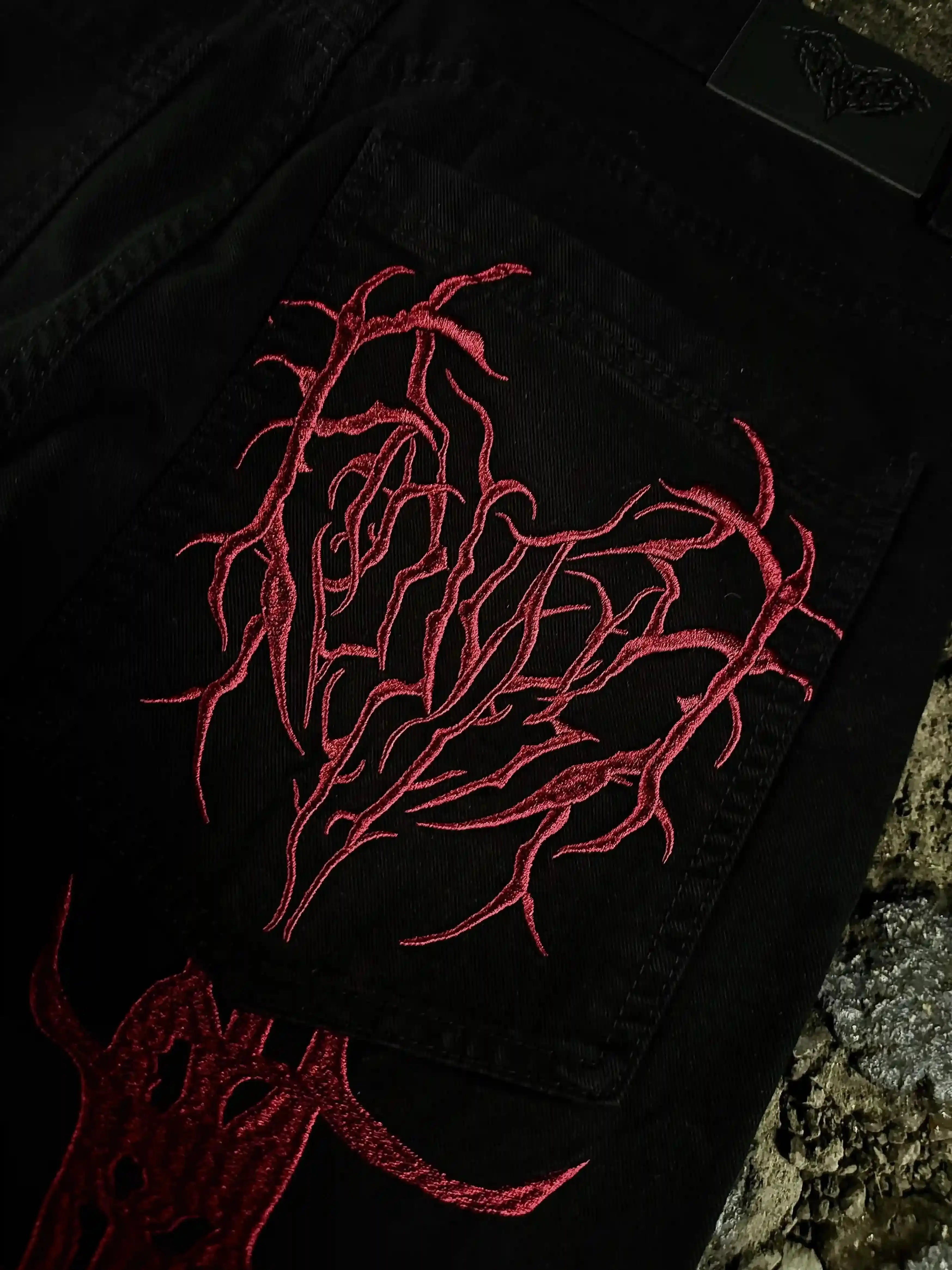 Embroidery: Over 750,000 stitches on front, back, and back pocket